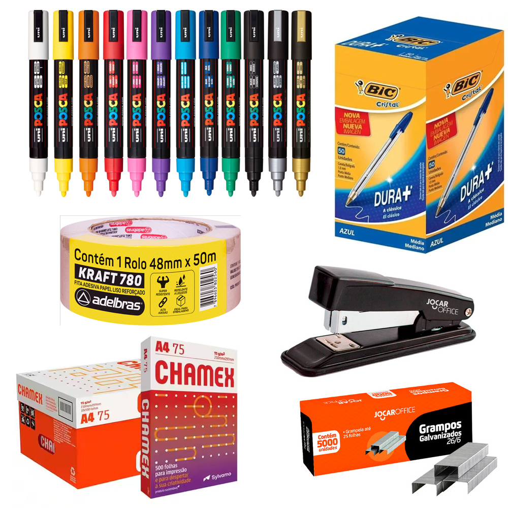 Oferecemos desde papéis, cadernos e agendas até canetas, marcadores, pastas, clips e muito mais. Nosso compromisso é garantir produtos de qualidade para atender às suas necessidades com eficiência e preços justos.